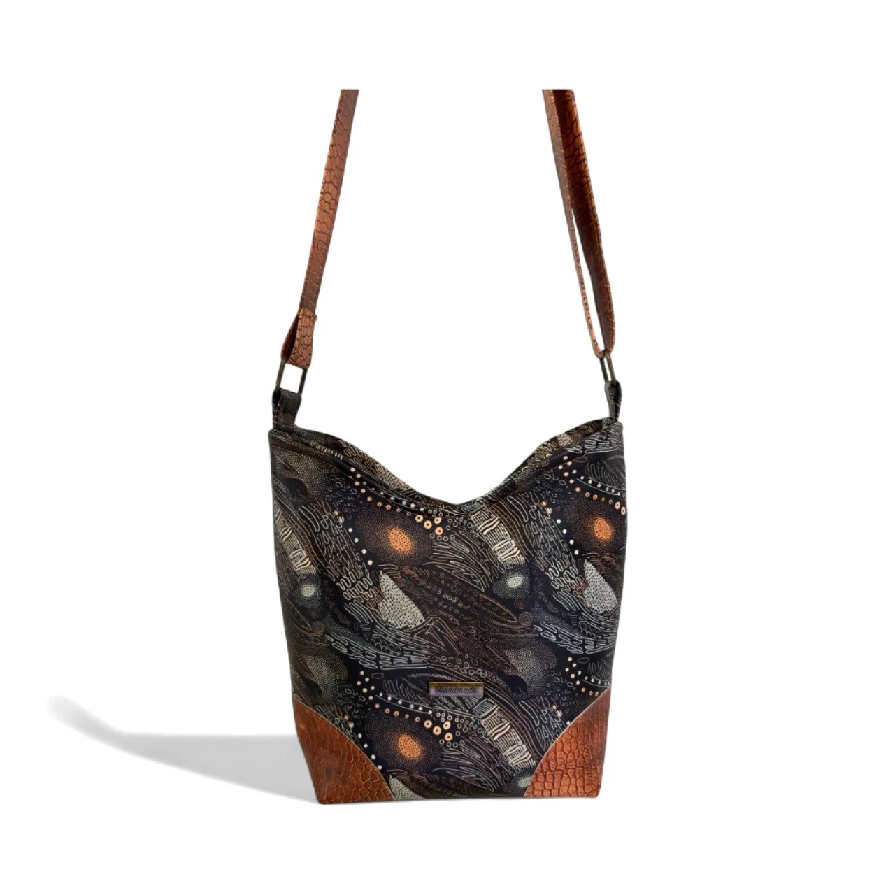 DIMENSIONS: the crossbody is 10" wide, 10" high, and 3" deep. The tote is 13" wide, 13" high, and 4" deep.