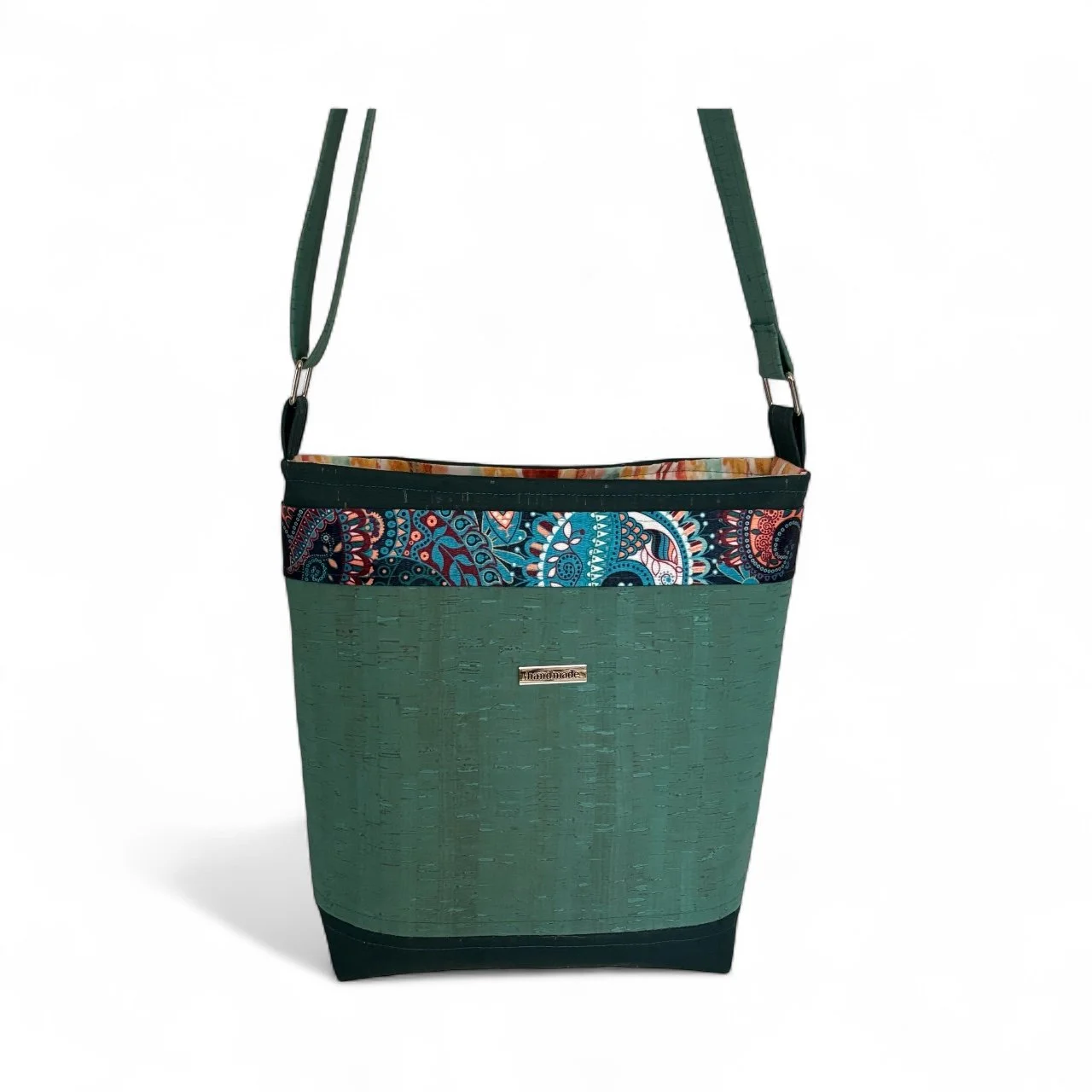 This bag features a go-anywhere size, multi-panel styling with interior slip pocket and an adjustable shoulder strap. Made of Rustic Turquoise and Rustic Jasper cork, accented with a beautiful paisley-patterned webbing. Mackenzie offers an eclectic look that will bring a bohemian vibe to your wardrobe!