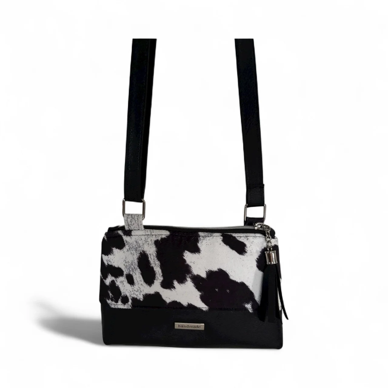 Petite and charming, the Mia crossbody bag is a stylish option to add to any ensemble. This bag's compact design is ideal for carrying essentials for everyday or a night out. The name and design was inspired by Mia Farrow as Daisy Buchanan, in the 1974 film, The Great Gatsby. Mia is also inspired by the warm and kind, Mia Thermopolis, of The Princess Diaries. This version is made of faux cowhide and faux leather.